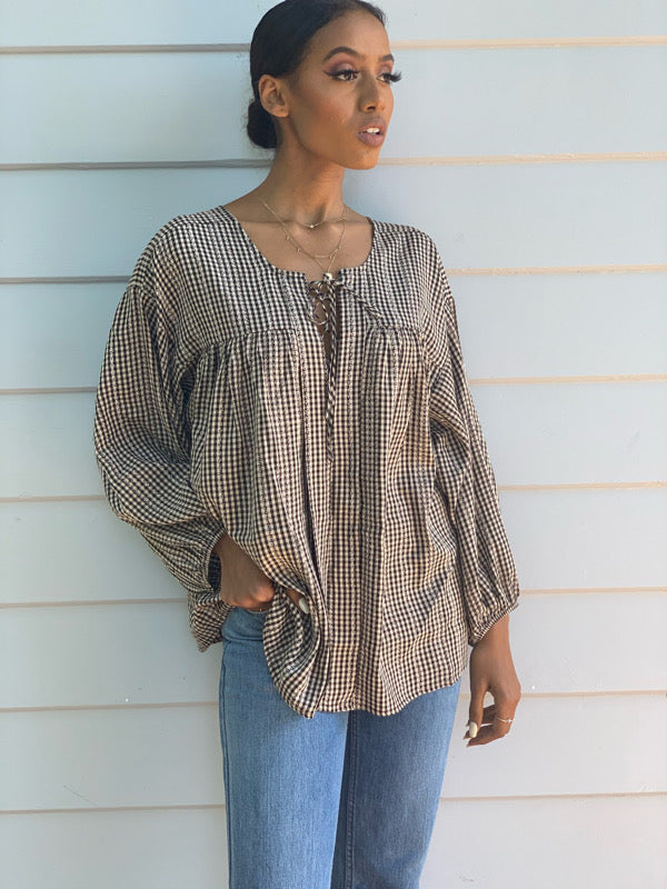 Natalia Black Gingham Blouse