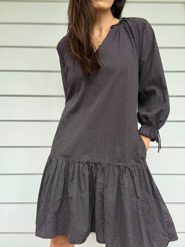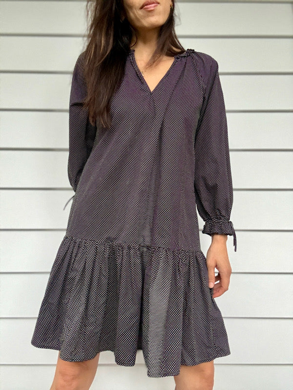 Our Liberty Polka-Dot Cotton Dress is sustainably-made from upcycled/deadstock cotton fabric. It's as effortless as it looks, inspired by 70'a bohemian ease, features a long-sleeve dress in a vintage-inspired mulberry print. A versatile style simply slips on, it's the perfect dress for the warm days or pair with booties and a jacket for winter. A loose-fitting style so we offer flexible sizing XS/S, M/L, L/XL.