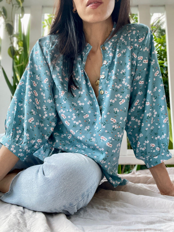 Marlow Blue Floral Long Sleeved Top