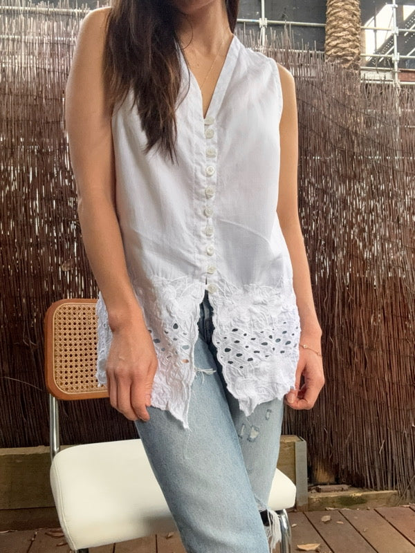 Vintage Linen Cotton Sleeveless Blouse