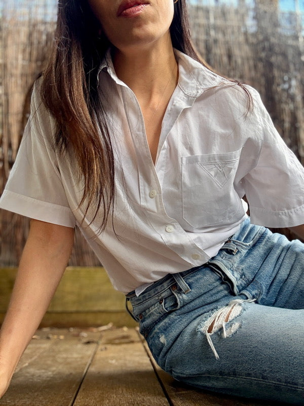Vintage White Cotton Short-Sleeved Shirt