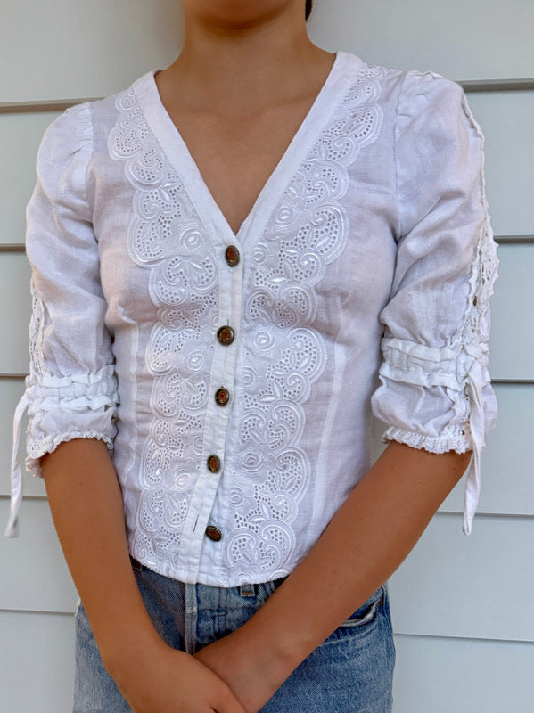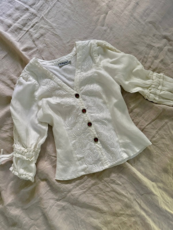 Vintage White Embroidered Cotton Blouse