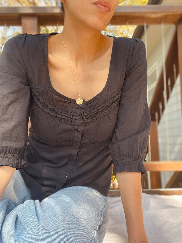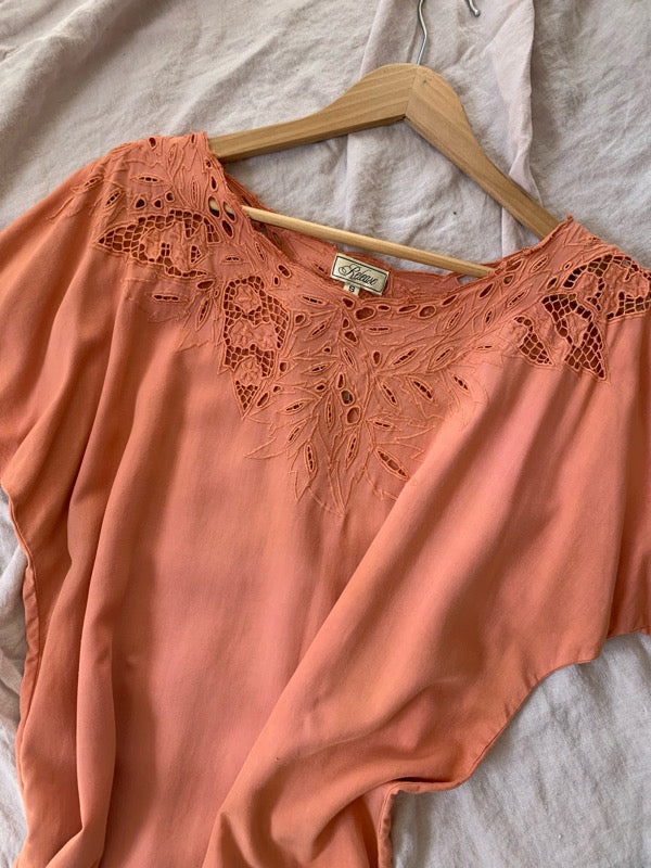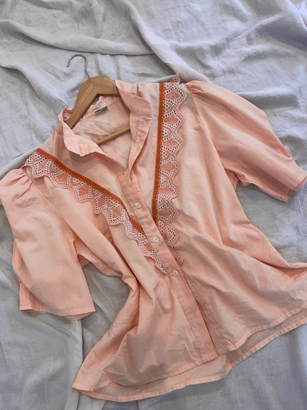 Vintage Peach Hand Dyed Short-Sleeved Blouse