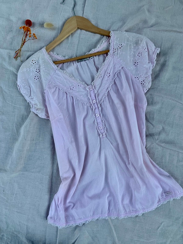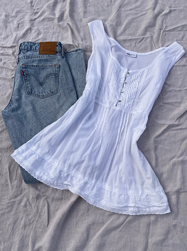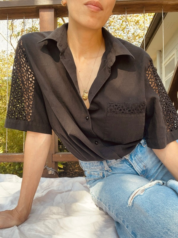 Vintage White Eyelet Cotton Short-Sleeved Blouse